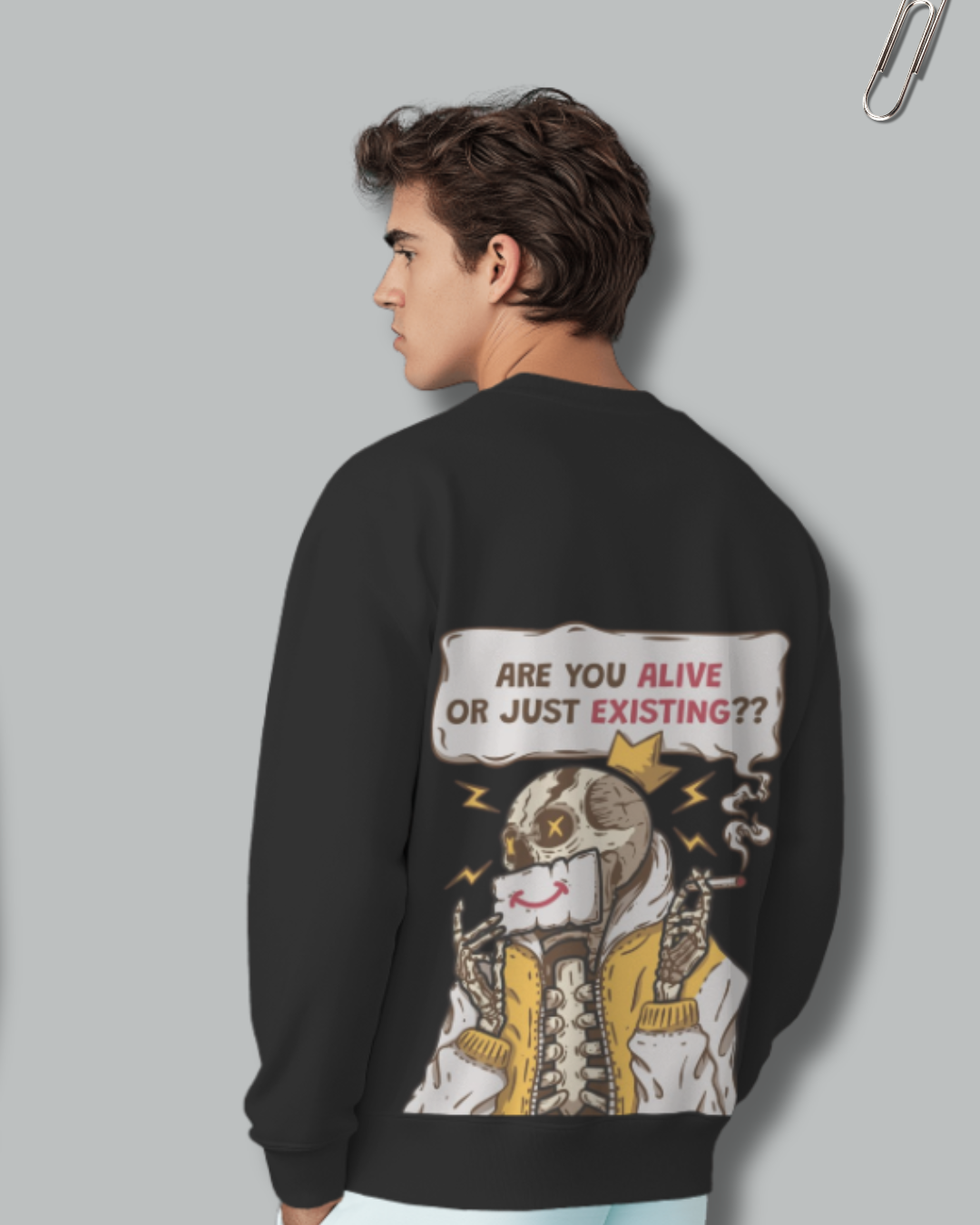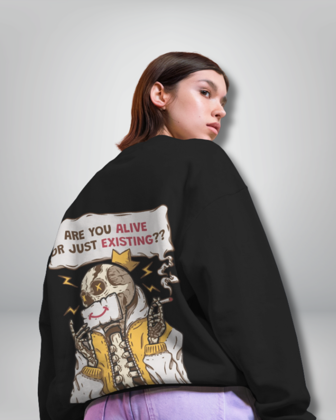 Back: A provocative visual. Featuring a distinct character and the bold question: "ARE YOU ALIVE OR JUST EXISTING??" – your statement, your challenge.